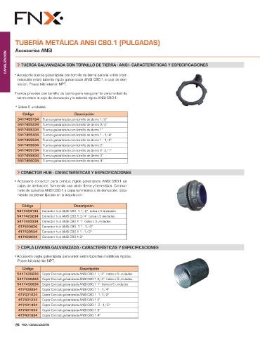 CANALIZACIÓN TUERCA GALVANIZADA CON TORNILLO DE TIERRA - ANSI - CARACTERÍSTICAS Y ESPECIFICACIONES