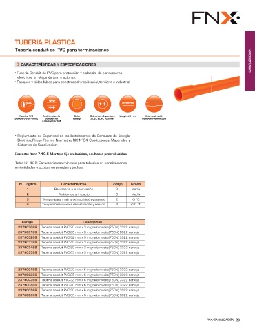 Tabla Nº 4.25: Características mínimas para tuberías en canalizaciones