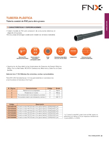 1237900566 Tubería conduit PVC 50 mm x 6 m grado fuerte (1.250N) 4422 gris *La Tubería Conduit PVC grado fuerte de FNX, supera los